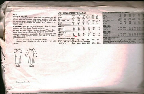 4273 Butterick Sewing Pattern Misses Very Loose Fitting Pullover Dress 4 Hour 12 Ebay
